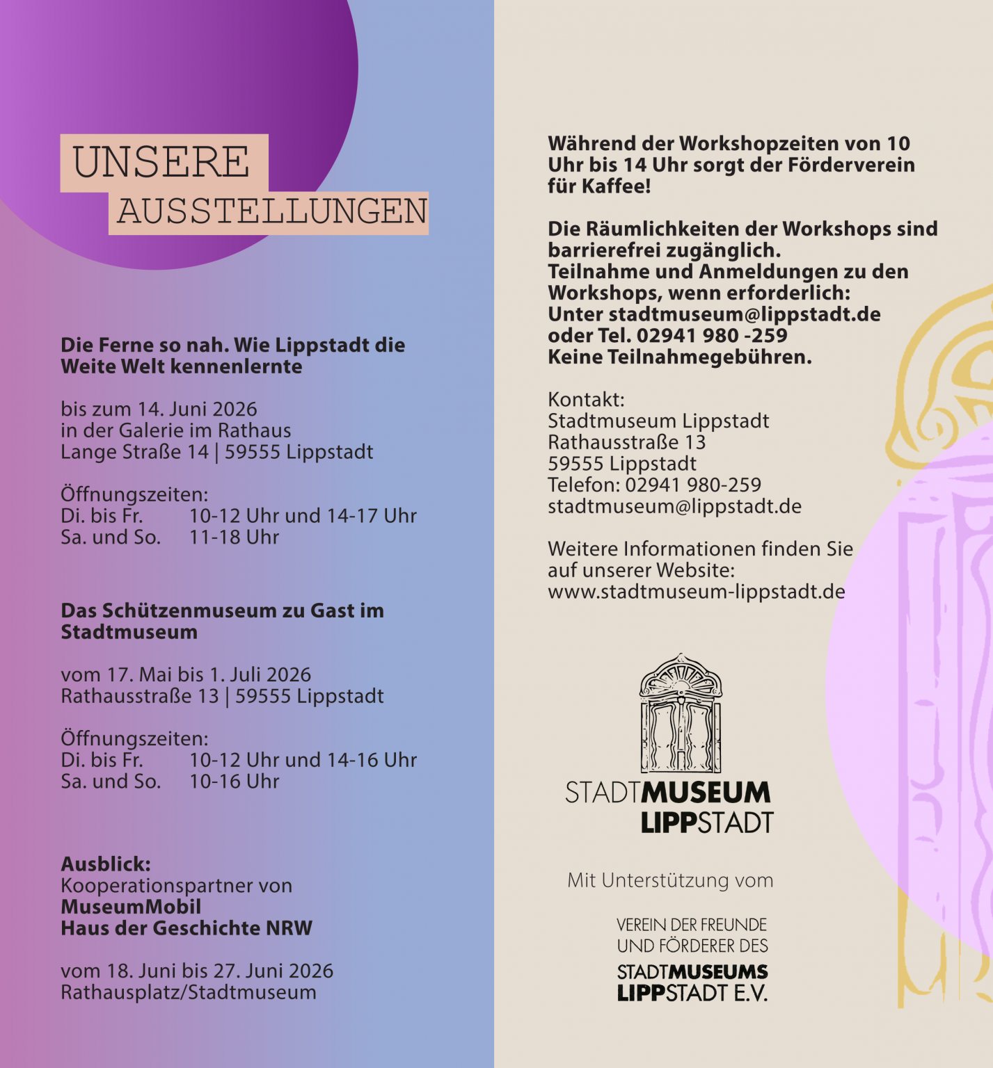 Unser Museum kommt zu euch nach draußen und lässt euch das, was ihr sonst hinter Glas seht, sinnlich erfahren. Zum Ausstellungsthema „Die Ferne so nah“ werdet ihr mit Kaffee und Tee selbst kreativ!